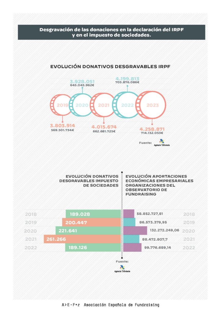 Los últimos datos de la Agencia Tributaria confirman que la colaboración ciudadana con las entidades sin fines lucrativos sigue creciendo, aunque a un ritmo más moderado. En 2023, casi 4,26 millones de personas se desgravaron por sus donaciones en el IRPF, con un importe total de más de 714 millones de euros.