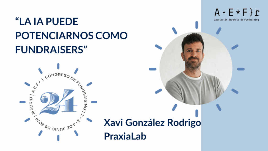 Xavi González Rodrigo es director y fundador de Praxia Lab, un laboratorio de innovación para el impacto que busca la aplicación de herramientas basadas en Inteligencia Artificial a las necesidades específicas de las entidades sociales. Lleva más de 15 años trabajando en el tercer sector y en proyectos de impacto social, y contará con una de las tres Masterclass del 24 Congreso de Fundraising en la que abordará ‘Cómo incorporar la IA en cada fase del ciclo de fundraising’.